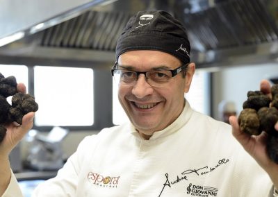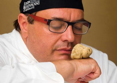 Bajo su dirección, Don Giovanni pasó de ser un restaurante más a convertirse en una institución gastronómica, galardonada con premios y reconocimientos de la crítica especializada. Apodado como el rey de la trufa, Andrea Tumbarello ha desarrollado una línea gourmet exclusiva con este preciado ingrediente como protagonista, que incluye productos como sal, miel, mantequilla, crema de boletus, caviar y hasta bombones. Durante la temporada de trufa negra y blanca, su restaurante ofrece un aclamado menú degustación dedicado a este manjar, una experiencia única para los paladares más exigentes.